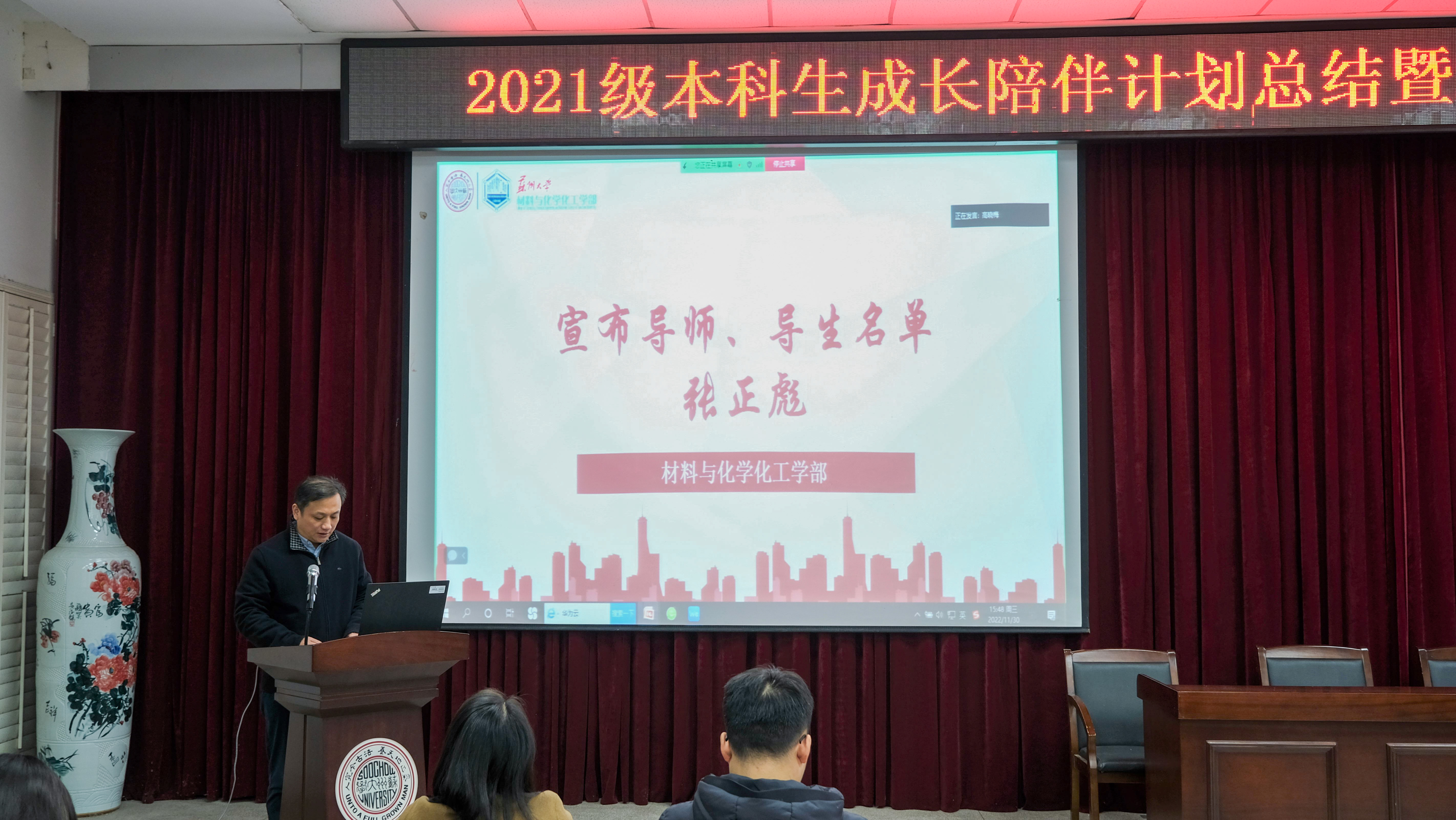 为全面贯彻落实党的二十大精神和习近平总书记关于教育的重要论述,深化立德树人根本任务,推进“三全育人”综合改革,11月30日下午,材料与化学化工韩国a片 “2021级本科生成长陪伴计划总结暨2022级本科生成长陪伴计划启动仪式”在云中苏大会议室举行。2022级本科生成长陪伴计划导师、导生,2022级全体本科生参加会议。会议由材料与化学化工韩国a片 学生工作办公室主任俞仁琰主持。
