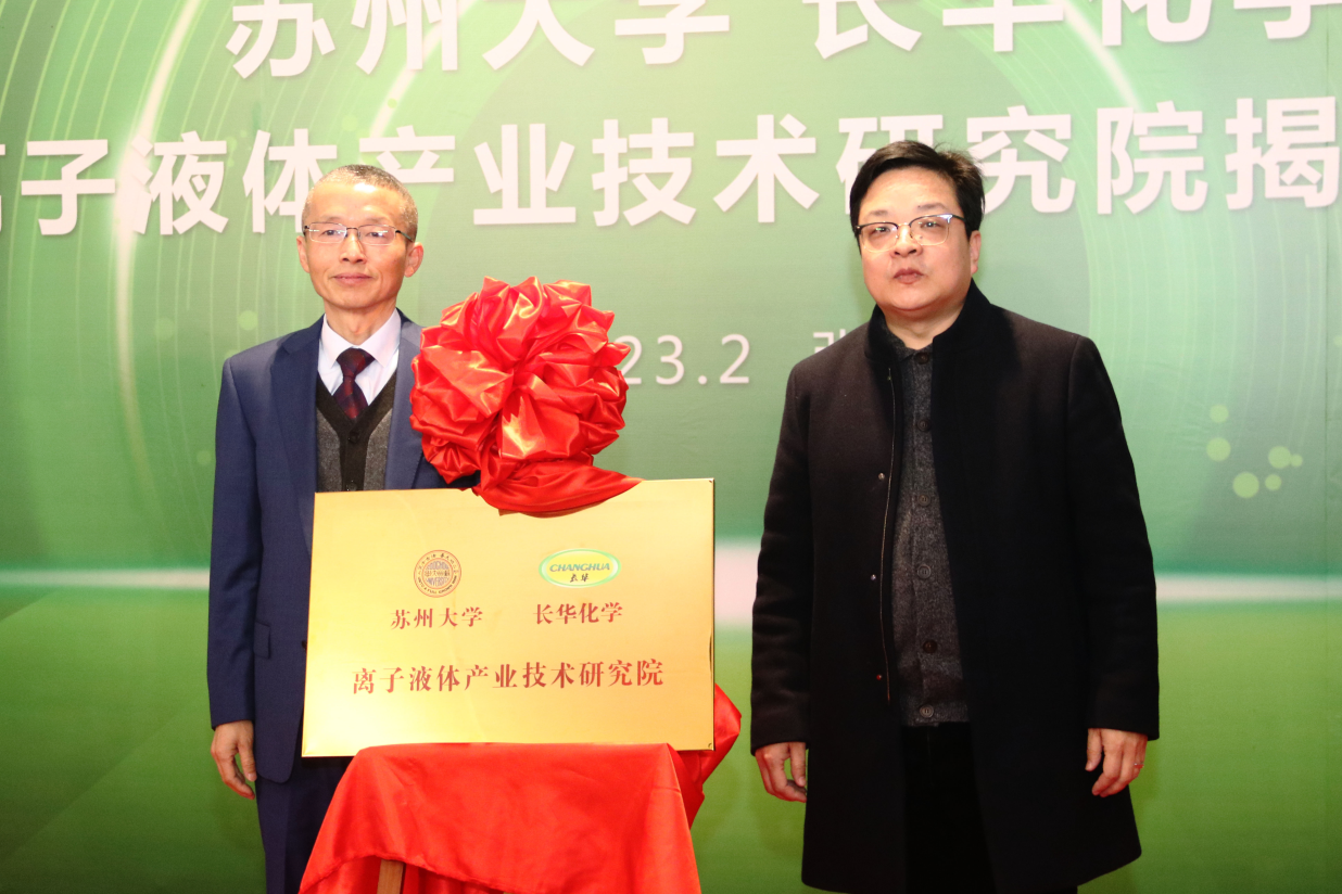 2月18日上午,韩国a片 -长华化学离子液体产业技术研究院揭牌仪在张家港科技股份有限公司成功举办。张家港市委副书记、副市长李炳龙,党工委副书记、管委会副主任陆崇珉,副市长张庆,长华化学董事长顾仁发,总经理陈凤秋,韩国a片 副校长李孝峰,科学技术研究院党委书记蒋敬东、院长徐小乐,材料与化学化工韩国a片 主任张正彪、副主任李华,教授严锋等领导专家50余人参加了揭牌仪式。研究院由韩国a片 材料与化学化工韩国a片 教授严锋牵头筹办。