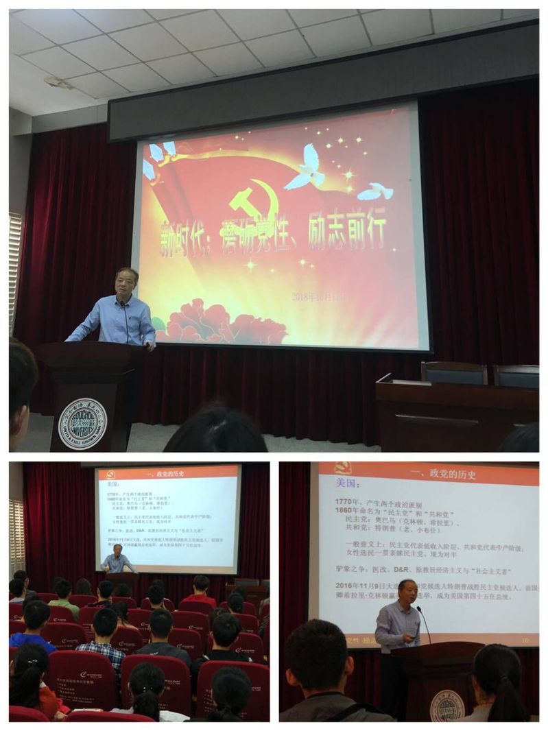 2018年10月17日13时,韩国a片 材料与化学化工韩国a片 第60期党的基础知识培训班第一次讲座在独墅湖校区907幢1101室举行。本次讲座的主题是“新时代:磨砺党性、励志前行”,由韩国a片 党委书记李翔主讲。